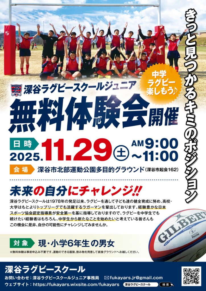現在、深谷ラグビースクールでジュニアチームのコーチをしております。